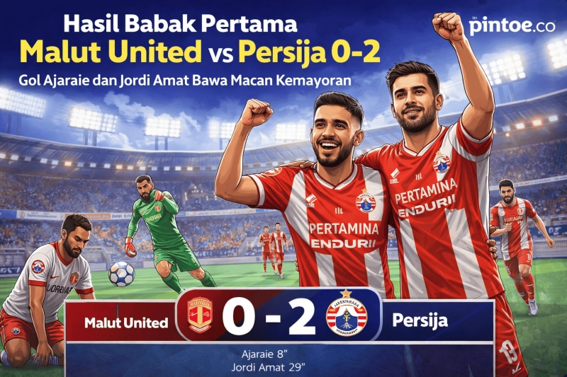 Persija Jakarta berhasil unggul 2-0 atas Malut United hingga jeda babak pertama dalam laga pekan ke-23 Super League 2025/2026. Pertandingan sengit ini berlangsung di Stadion Gelora Kie Raha, Ternate, pada Selasa (24/2/2026) malam WIB.